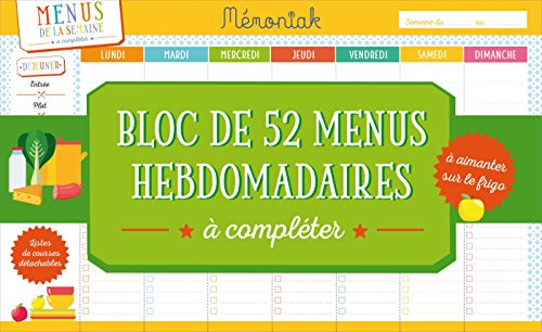 Le Titre Du Livre : Bloc de 52 menus hebdomadaires à compléter Mémoniak 2018
